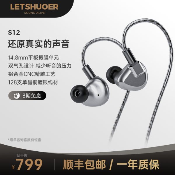 ¥799.00S12是一副专为音乐爱好者打造的Hi-Fi耳机。它采用铄耳定制的14.8mm平板单元,具有更宽的声场、更好的清晰度、更快的瞬态、更好的高音扩展和出色的分辨率。它将是您日常音乐享受的至佳伴侣。 特征: ☆ 定制 14.8mm 平面驱动器 ☆ 镀银单晶铜电缆